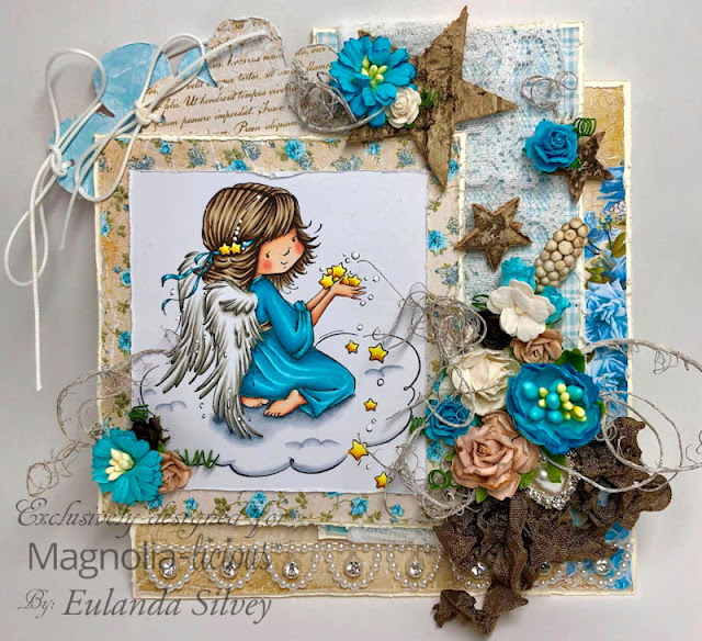 This stunning Whimsy image is called "Angel Celeste" and is still available in the store. I've colored her with my copics and added some white dimensional dots in a few places.